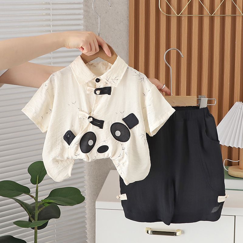 Pojkars nya barnkläder 2024 Fashionabla babysommar tecknade kortärmade tvådelade set