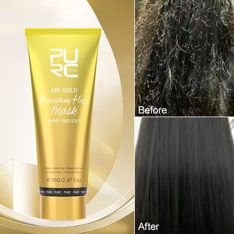 PURC Nourishing Hair Mask Gold Non Steaming Pouring Film Improvements Scratchy Heat Dyeing Moisturizes Hair, Softens and