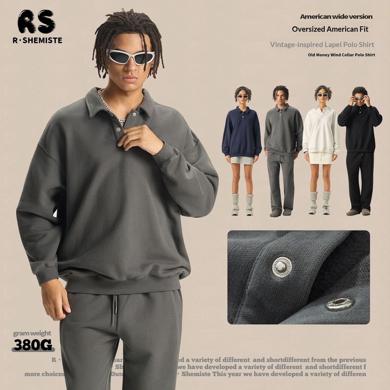 Pure Pure RS Men's Clothing|Old Money Clean Fit Stand Collar 380G Heavyweight Polo Shirt College Style Sweatshirt For Men