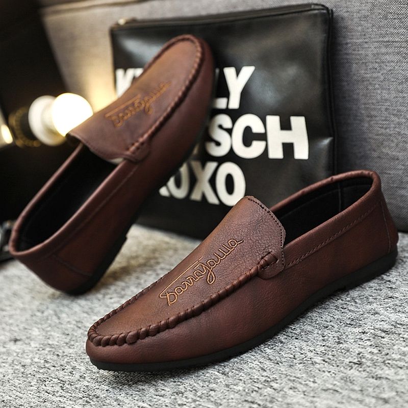 SHLIANG Herr Modeskor Nya Casual Skor för Herr Slip-On Loafers Bekväma Mjuka Läderskor Andningsbara Mockasiner Y0165