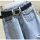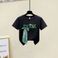 Damkläder mode färgmatchande broderi kortärmad T-shirt råkant höftlindad A-linje jeanskjol med hög midja