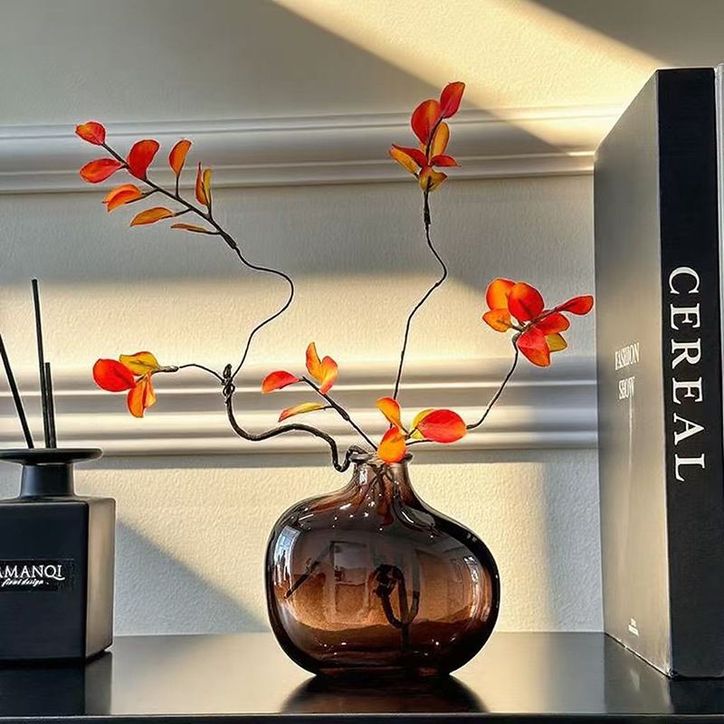 Silent Wind Glass Vase Maple Leaf Entryway TV Cabinet Dining Table Living Room Home Decoration Small Ornament