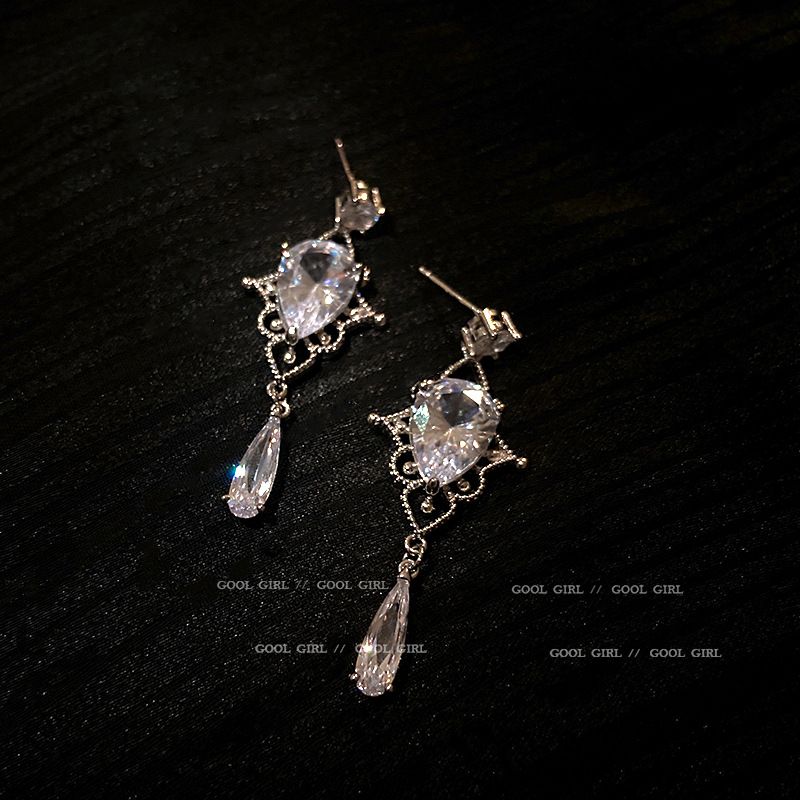 Silver Needle Water Drop Zircon Korean Dongdaemun Design Sense Super Sparkling Internet Celebrity Earrings Niche Full