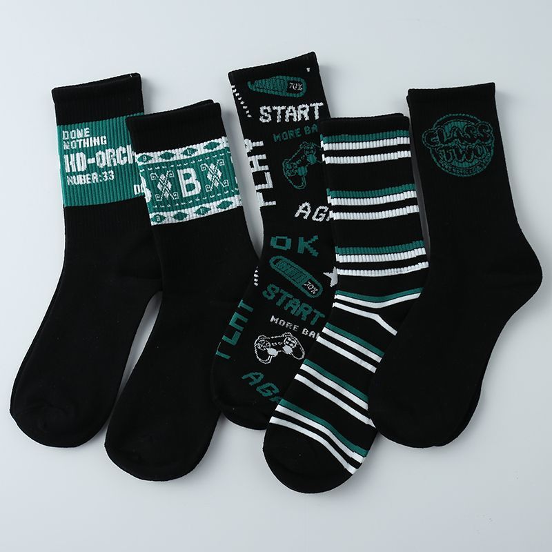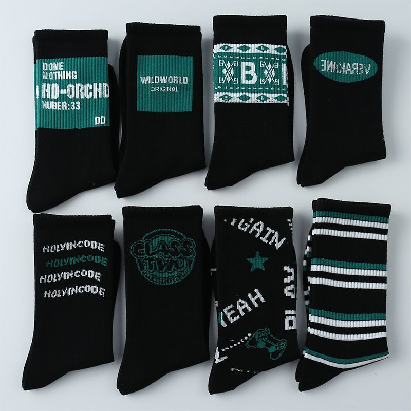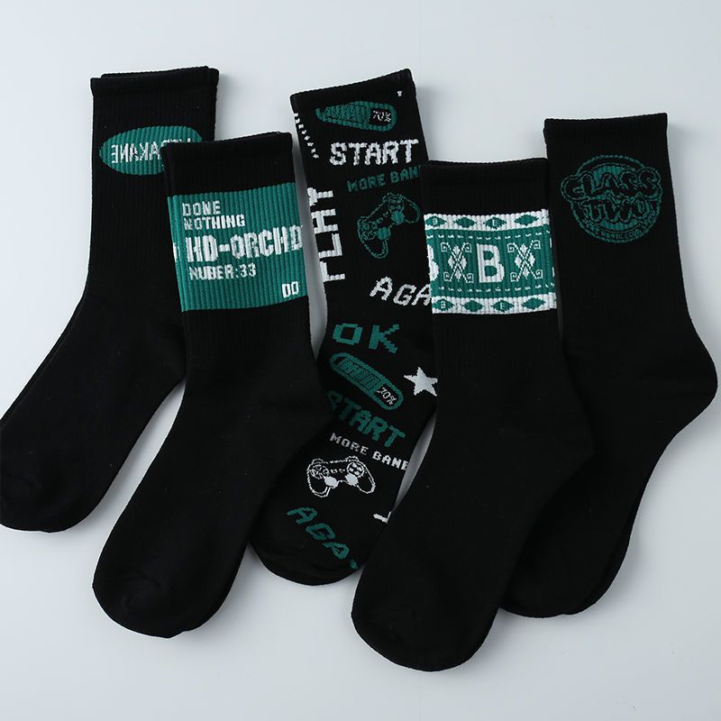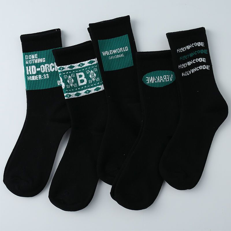 Socks for male students, sports socks, autumn versatile black mid length insets, moisture and odor resistant basketball socks, long length male socks