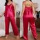 Sovkläder för damer Vår- och höstpyjamas Enfärgade hängslen Byxor Tvådelad kostym