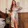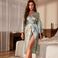 Sovkläder för kvinnor Tryckt långärmad nattlinne Tunn Sexig Morgonrock med snörning Enkel kofta Pyjamas Simulerad badrock i siden