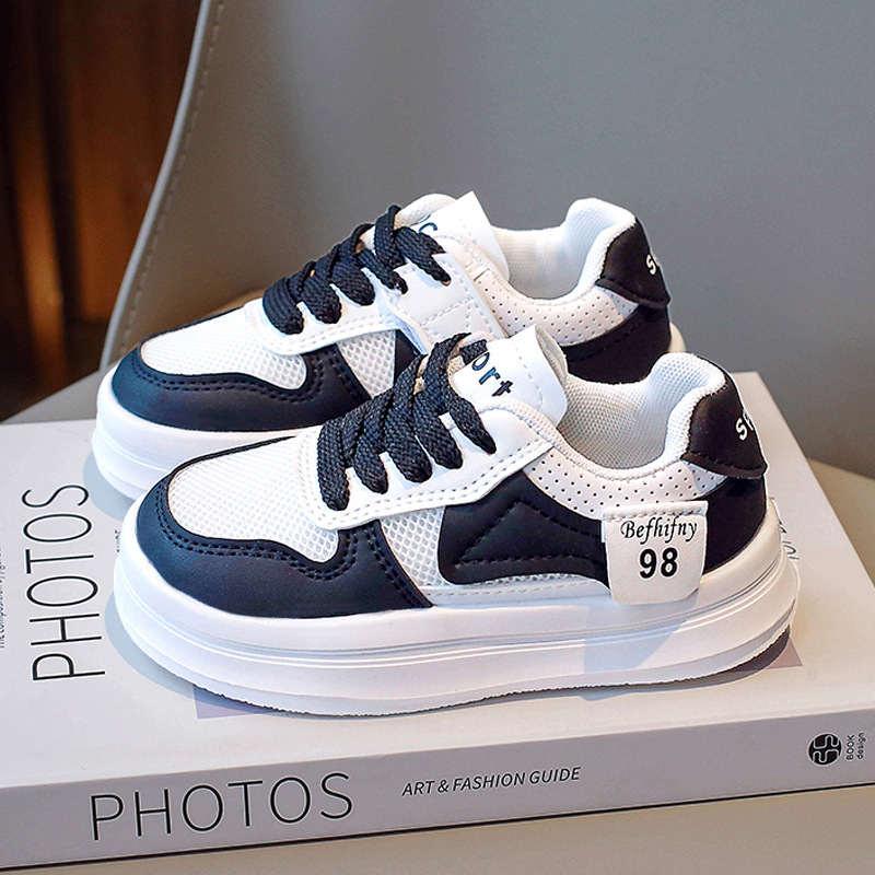 Sportskor för pojkar och flickor 2023 Nya Barn Vita Små Vita Skor Mesh Andas Studentbräda Skor Medium till
