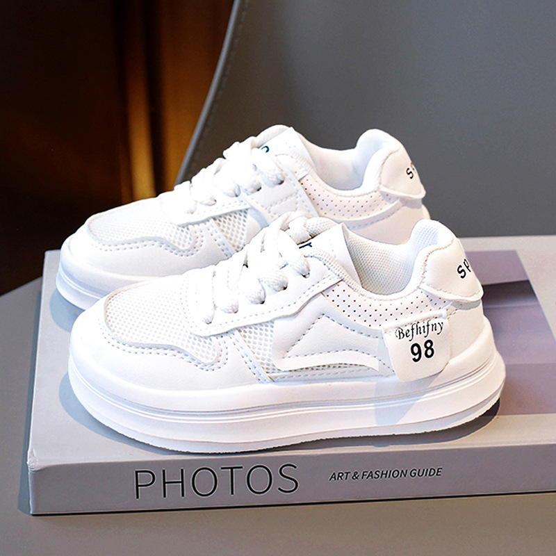Boys' and Girls' Sports Shoes 2023 New Children's White Small White Shoes Mesh Breathable Student Board Shoes Medium to Large Children's Soft Soles