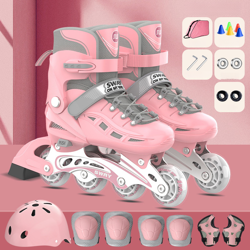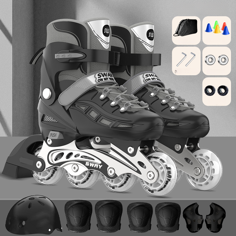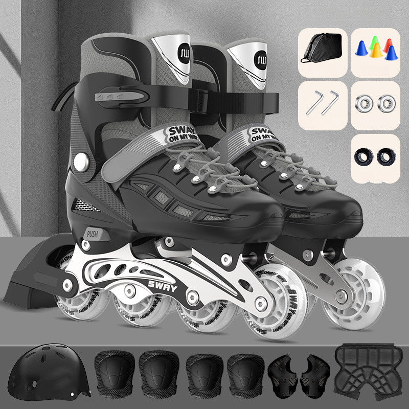 Sway PU Single Flash Adjustable Children's Roller Skates For Boys And Girls, Inline Skates, Detachable