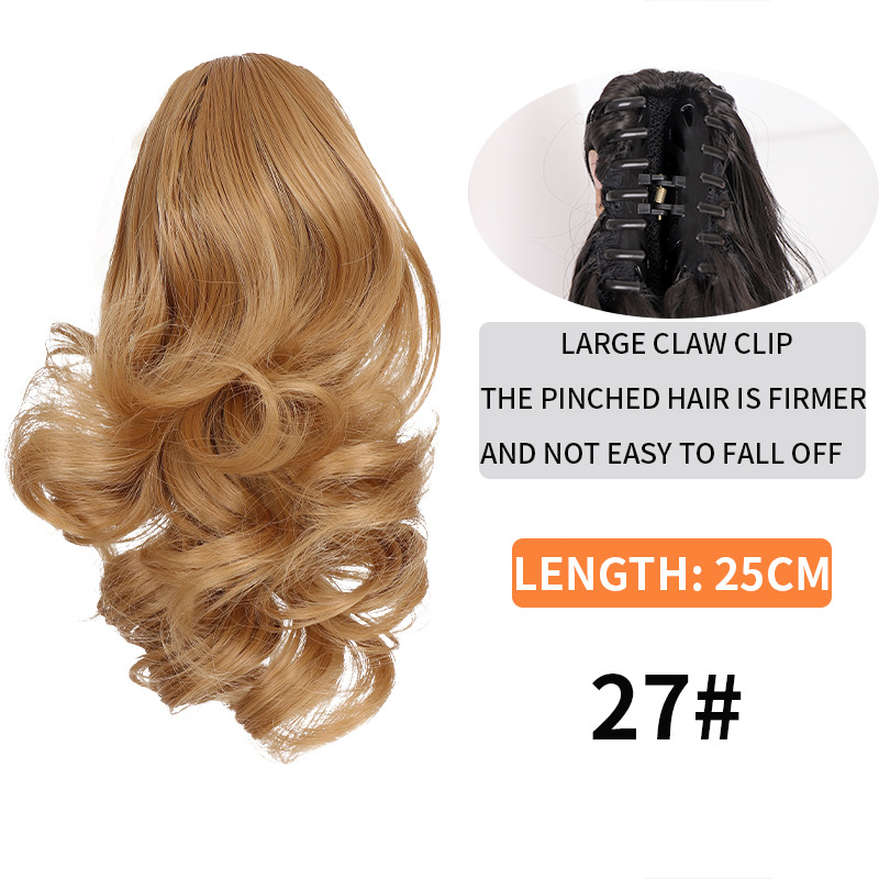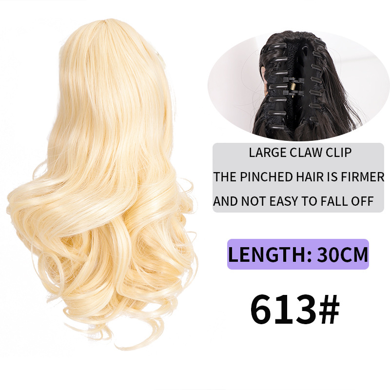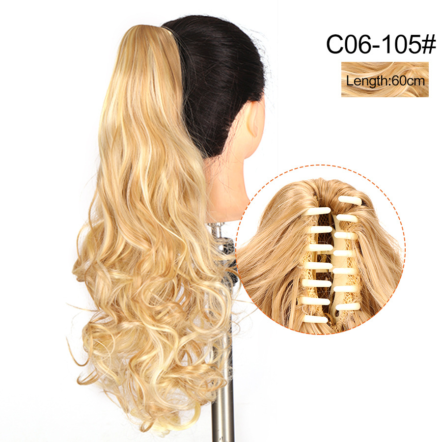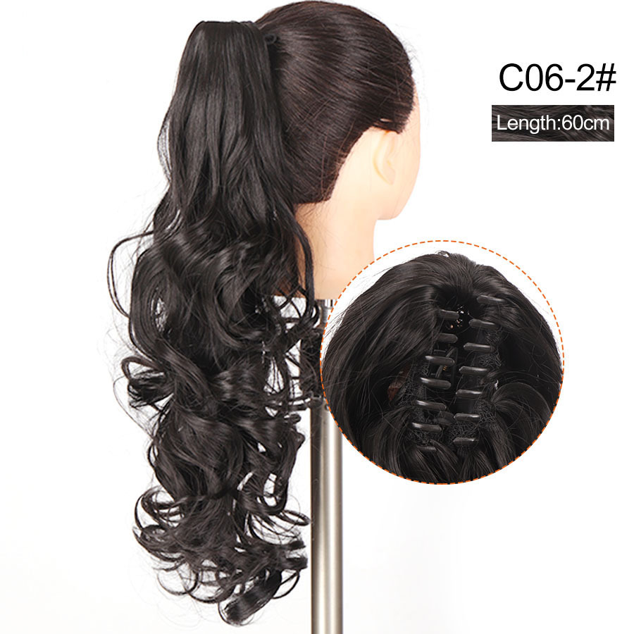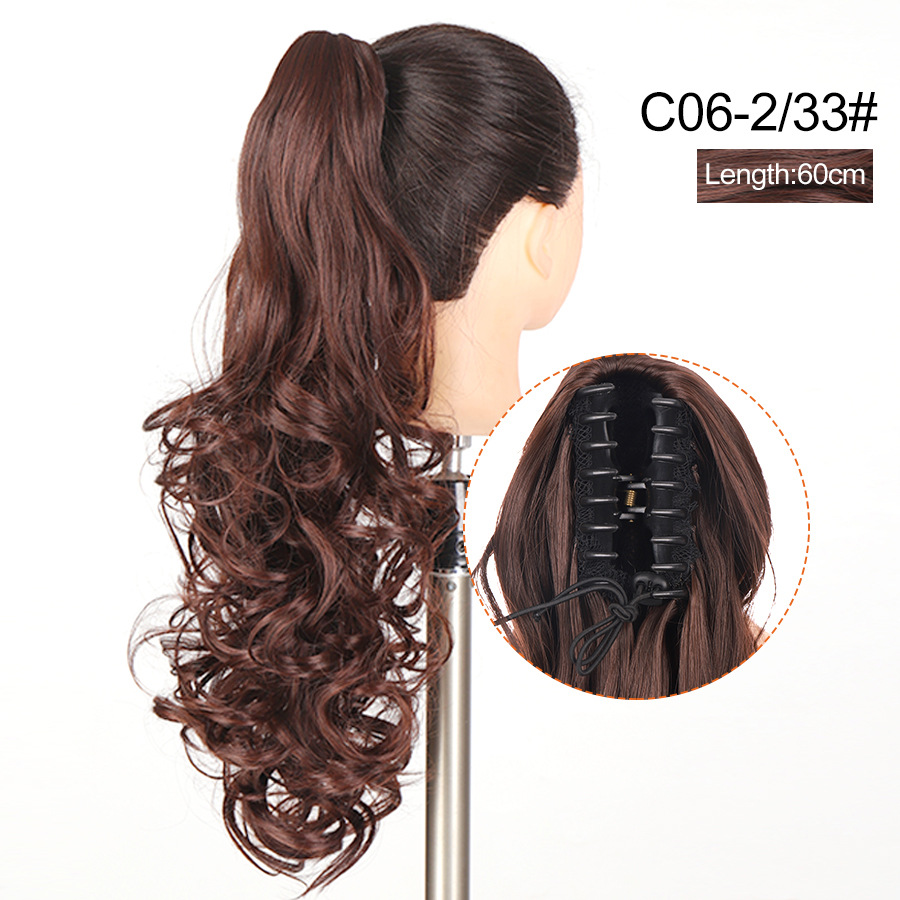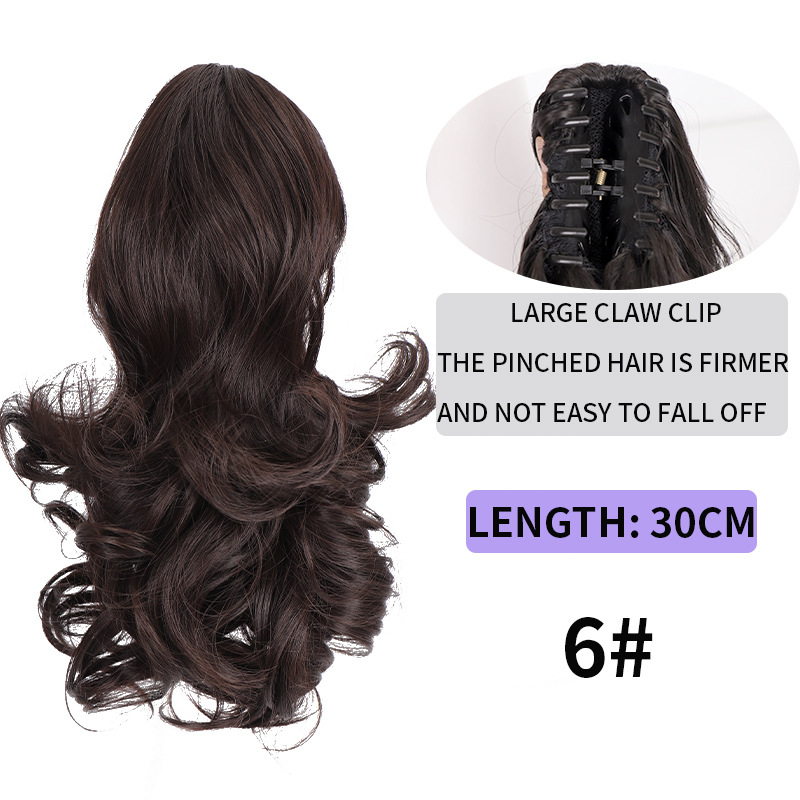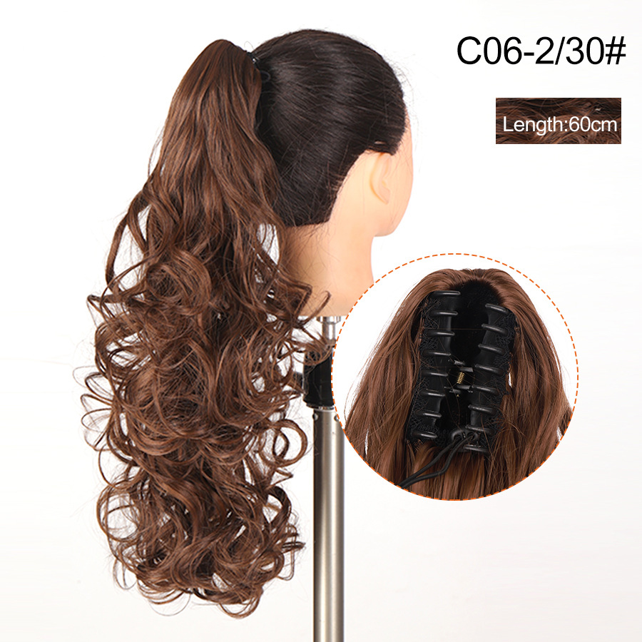 Syntetiskt hår Långt lockigt hår för kvinnor med peruk stor vågig tigerklämma matt högtemperatur siden fluffig naturlig hästsvansfläta
