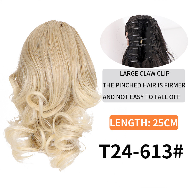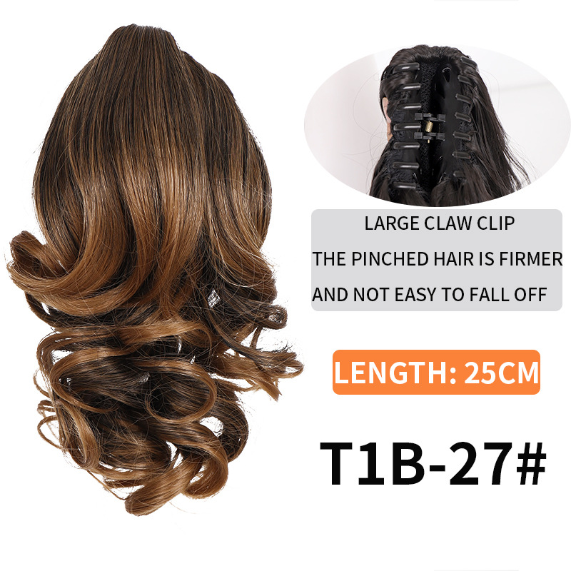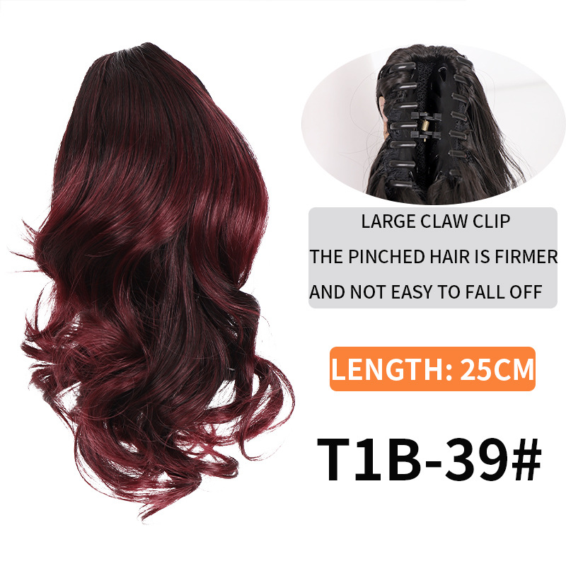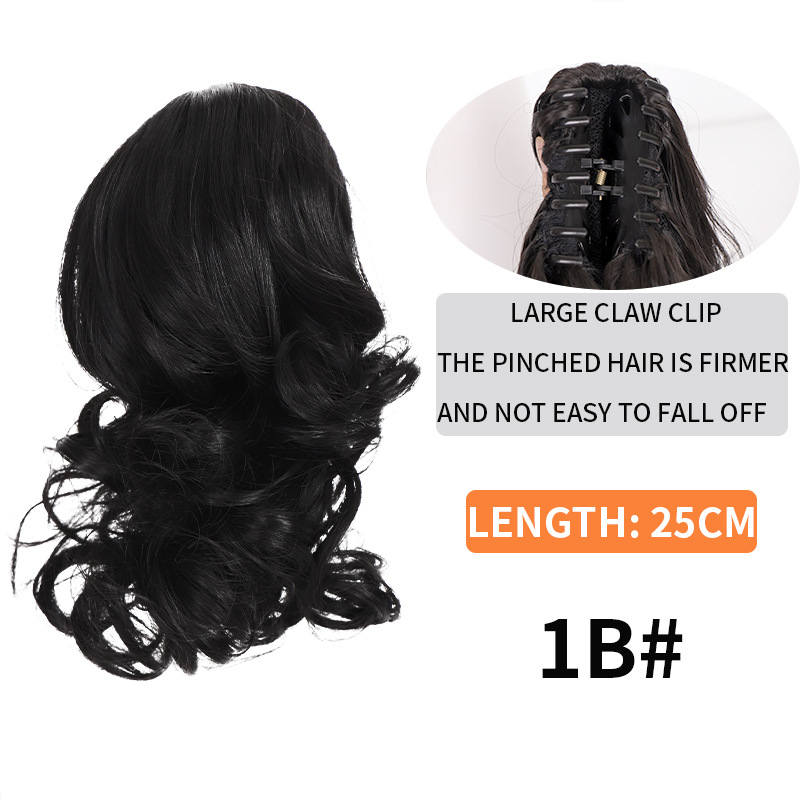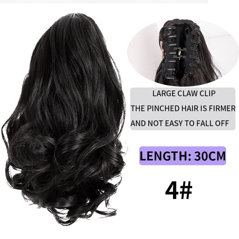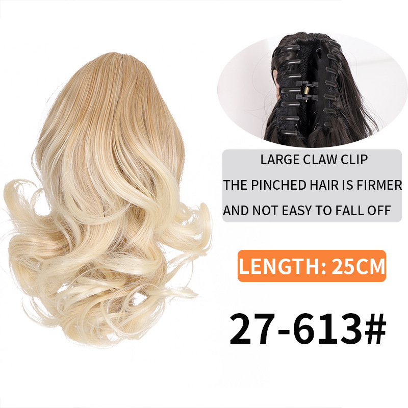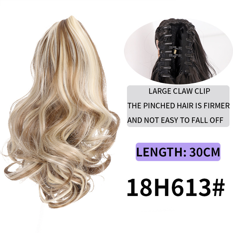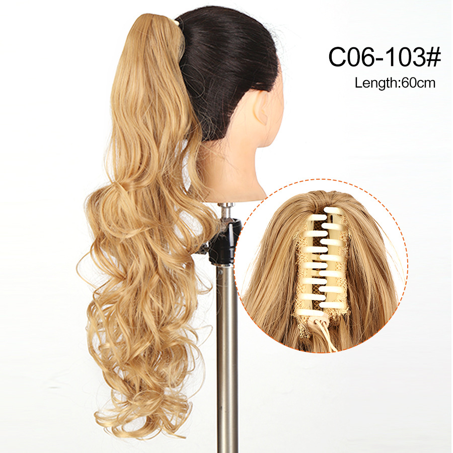 Syntetiskt hår Långt lockigt hår för kvinnor med peruk stor vågig tigerklämma matt högtemperatur siden fluffig naturlig hästsvansfläta