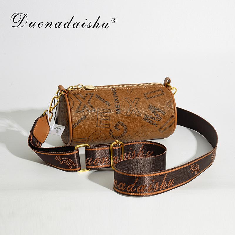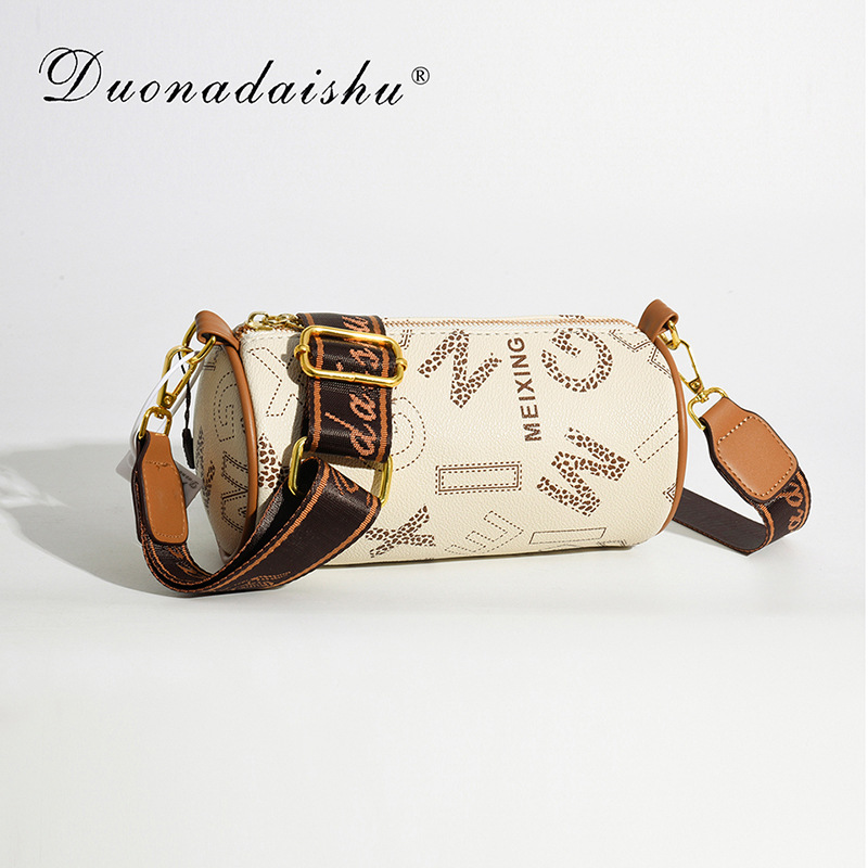 Trendig bokstavscylindrisk för kvinnor 2024 ny mode koreansk version väska, snygg textur PU enkel kvinnors axelväska
