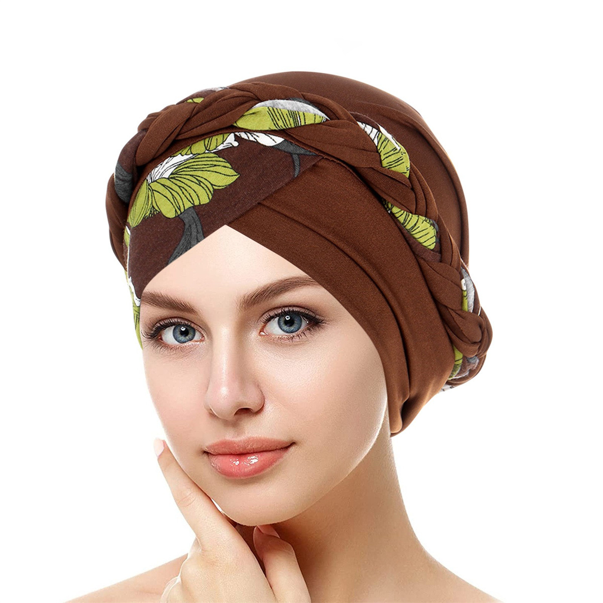 Tvåfärgat blommigt tyg som skarvar kort flätad panna och panna fläthatt multifärgad turbanhatt indisk hatt