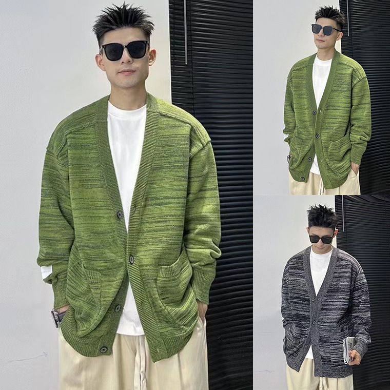V-Neck Cardigan Knitted Sweater Men's Light Business Style Casual Spring and Autumn American Style Outerwear Trendy