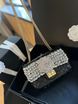 Spring and summer new small fragrant style diamond grid embroidery thread small square bag, rhinestone flower chain shoulder bag, fashionable and versatile crossbody bag