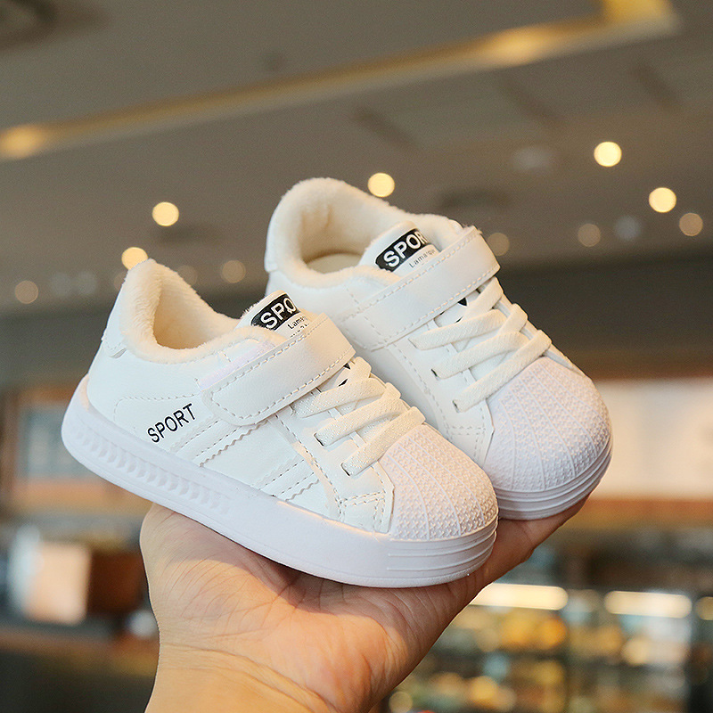 Winter plush baby shoes shell top boys and girls' shoes children's board shoes plush thick cotton shoes waterproof small white shoes