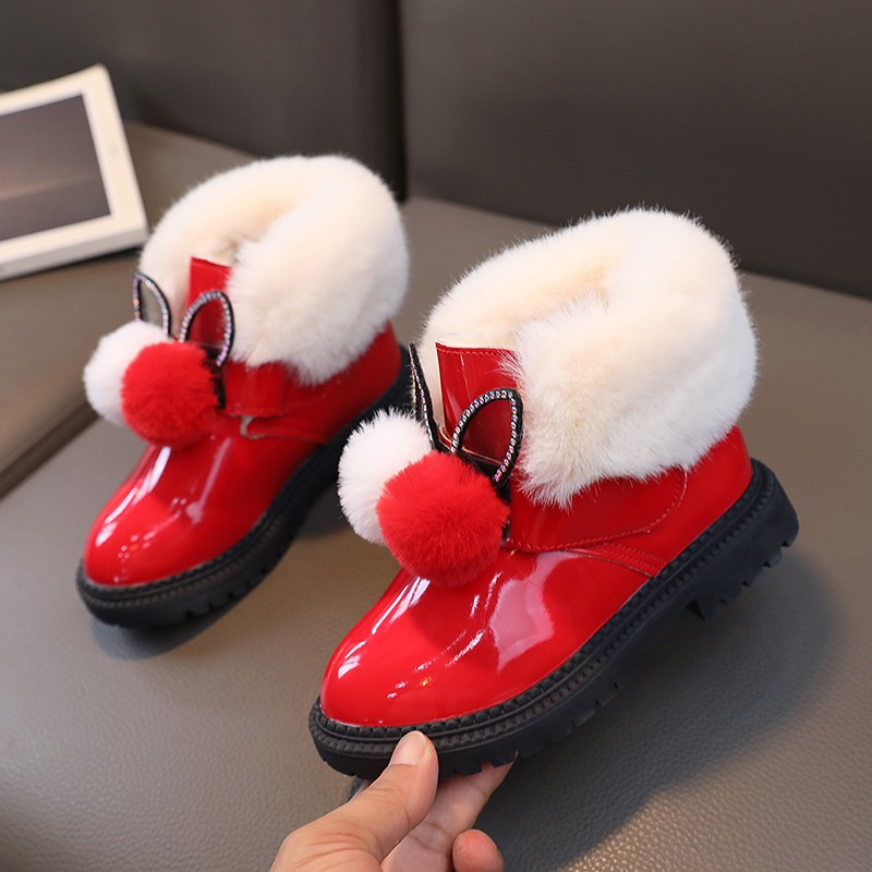 Girls' snow boots winter new Korean version children's short boots with thick velvet and large cotton insulation cotton boots anti slip rubber sole