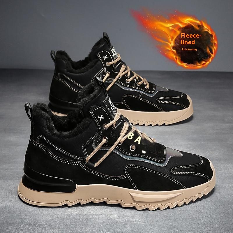Winter snow boots with thick fleece, warm and waterproof men's shoes, anti slip, outdoor thick soled, winter high top, Northeast cotton shoes
