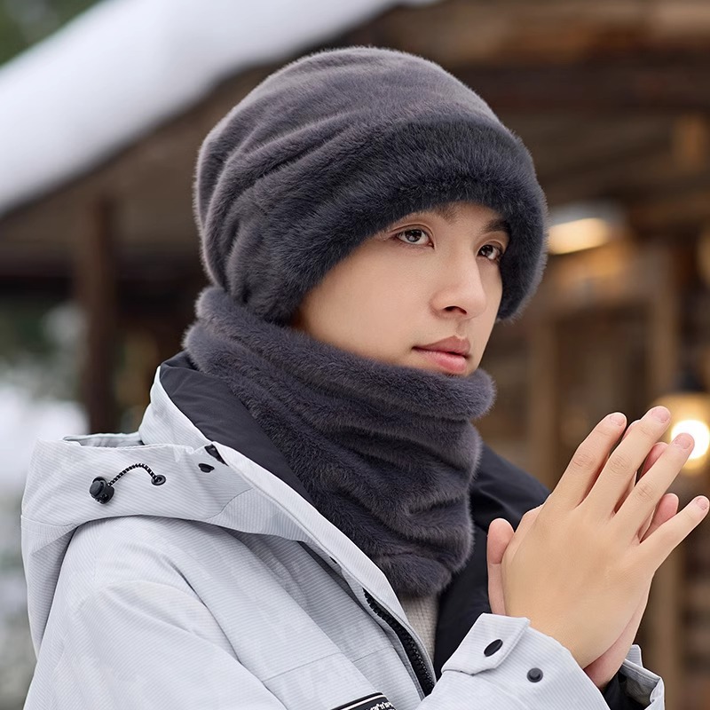 2024 Men's Winter Warm Pullover Hat Warmer Cycling Ear Protection Windproof Fleece Thickened Face Mask Neck Scarf