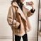 Women's Faux Suede Faux Fur Lined Short Jacket - Winter Cozy Fleece Outerwear Loose Fit Bomber Style, Button Zipper Closure (Khaki, Beige, Coffee)