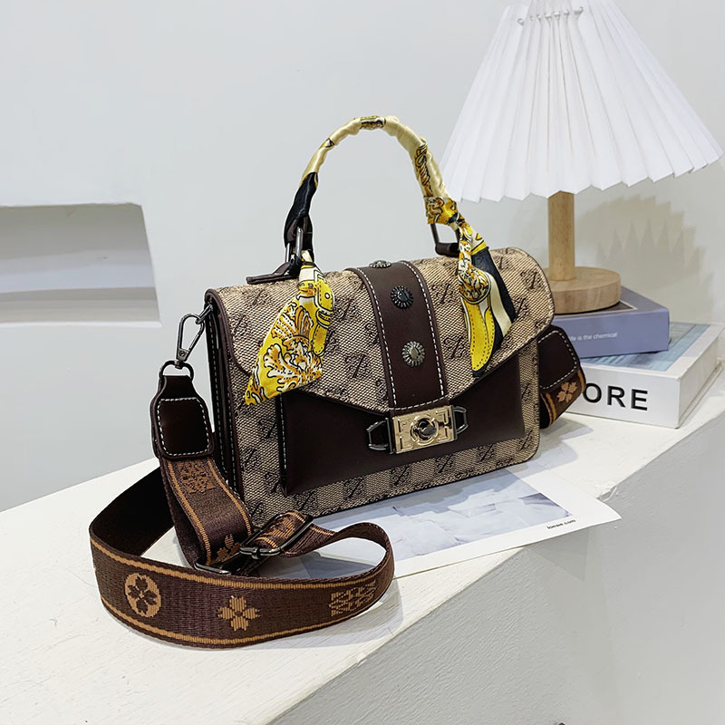 Women's New Fashionable and Trendy Handbag Casual and Versatile Scarves Single Shoulder Bag Retro Printed Handbag Crossbody Small Square Bag