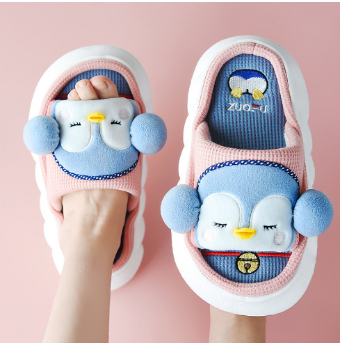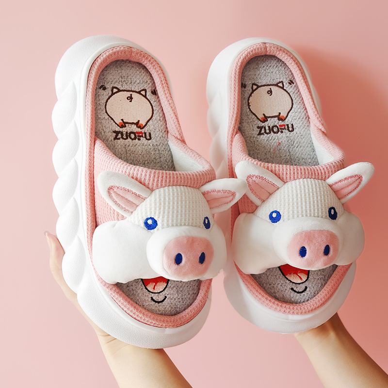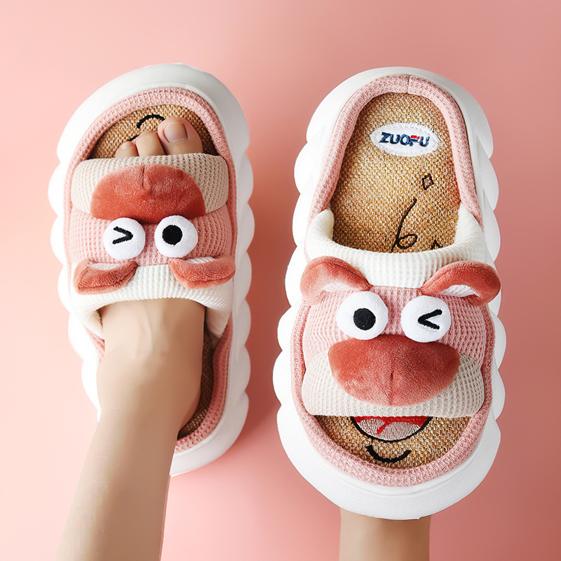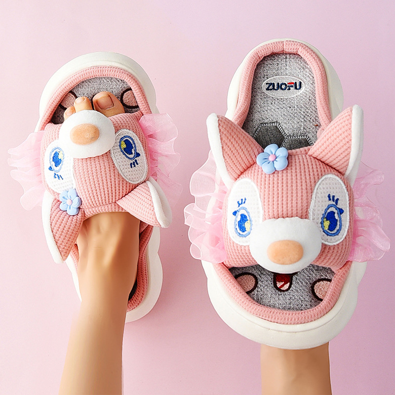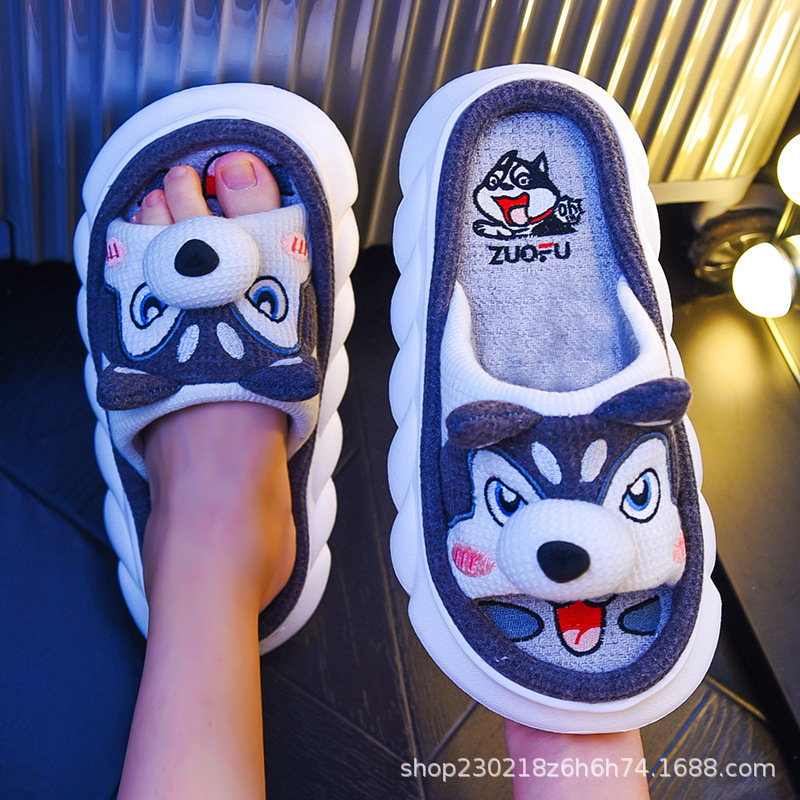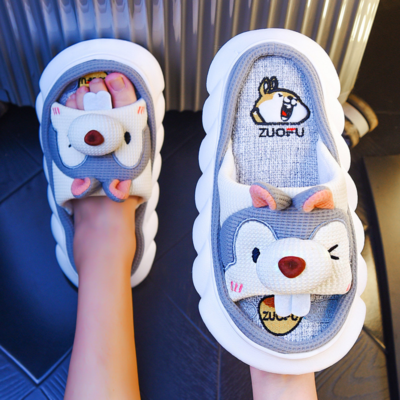 Corgi Four Seasons Linen Slippers Female Cute Home Home Spring and Autumn Office Thick soled Cotton Linen Slippers Male Summer