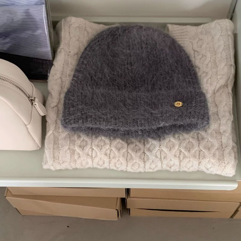 Hat Xiangfang Grey Rabbit Hair Knitted Woolen Hat Women's Autumn and Winter Face Showing Small Hat Warm Windproof Pile Hat Cold Hat