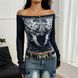 Y2K Hot Girl Printed Long Sleeve One Shoulder T-shirt Women's Clothing 2025 Autumn And Winter